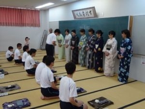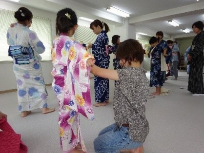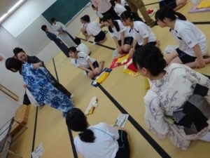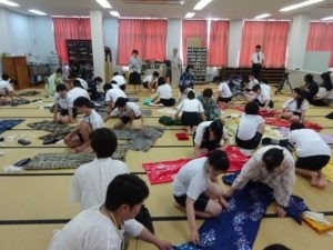6月18日、毎年NPO法人和装教育国民推進会議香川県支部が行うゆかた着方教室のお手伝いに香川誠陵中学校へ行って参りました。
