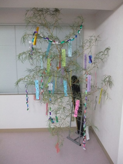 最後は皆さんに、七夕の短冊にお願い事を書いていただき、七夕飾りの完成です^^